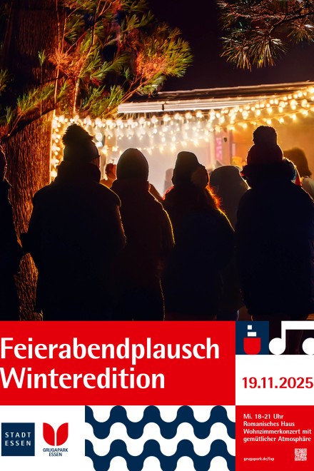 Am Mittwoch, 19. November, lädt die Feierabendplausch-Winteredition, von 18 bis 21 Uhr, zum Wohnzimmerkonzert on Tour mit Lou Dynia auf den Vorplatz am Romanischen Haus bei den Mustergärten im Grugapark Essen ein.